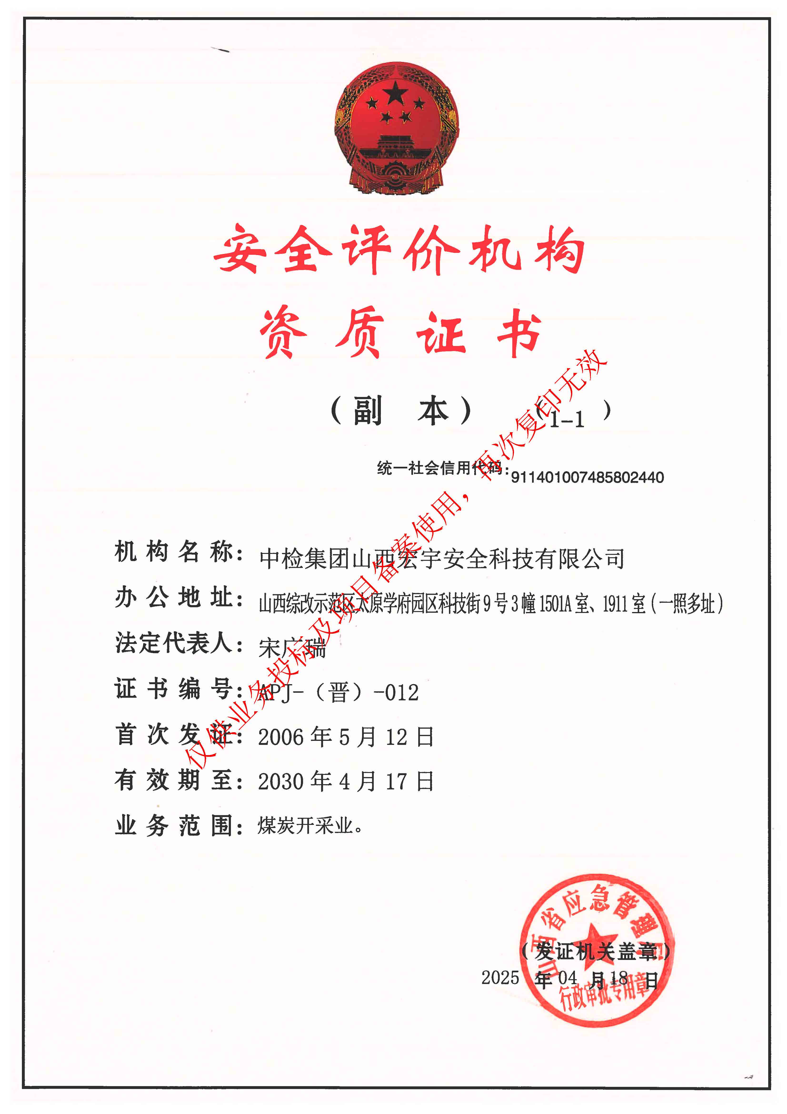 中检集团山西宏宇安全科技有限公司 晋ICP备11005879号-2